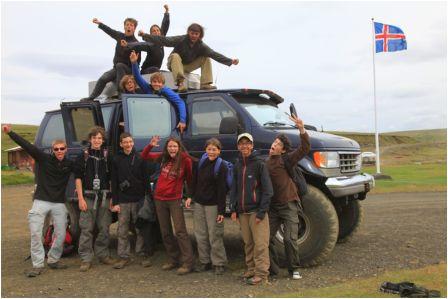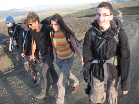 We were supposed to drive to Skaftafell , but a car problem forced us to call the rescue rangers.Despite an excellent job from them, the car had a breakdown, so they called an excursion bus to bring half of our group to the next camp site next to landmanalaugar, while the other part was walking but they found a new taxi:The rescue bus !.So after all these adventures, everybody met at the camp site to share a nice dinner.